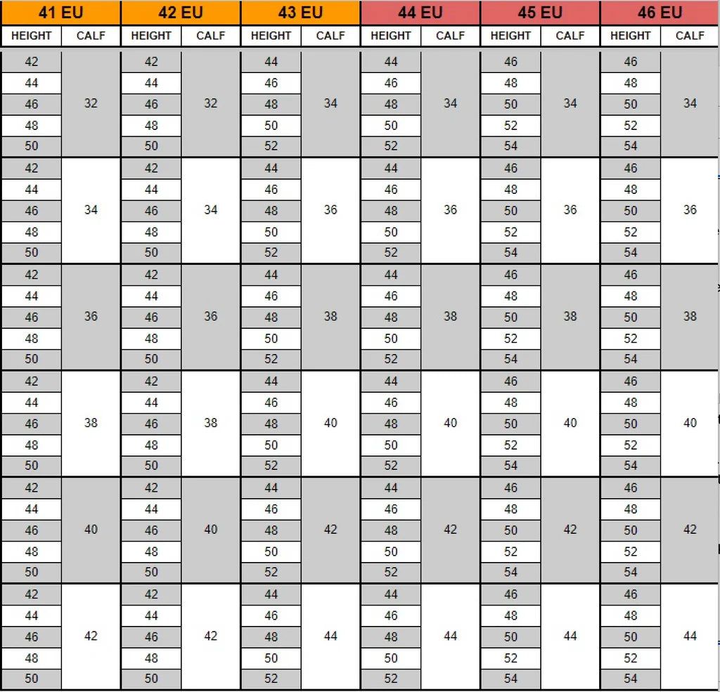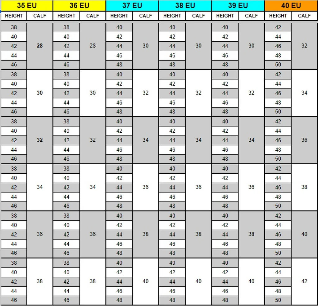 - Højden: Måles fra gulvet og til knæhas. Såfremt du måler eksisterende støvler, skal du måle den bagerste del uden hæl